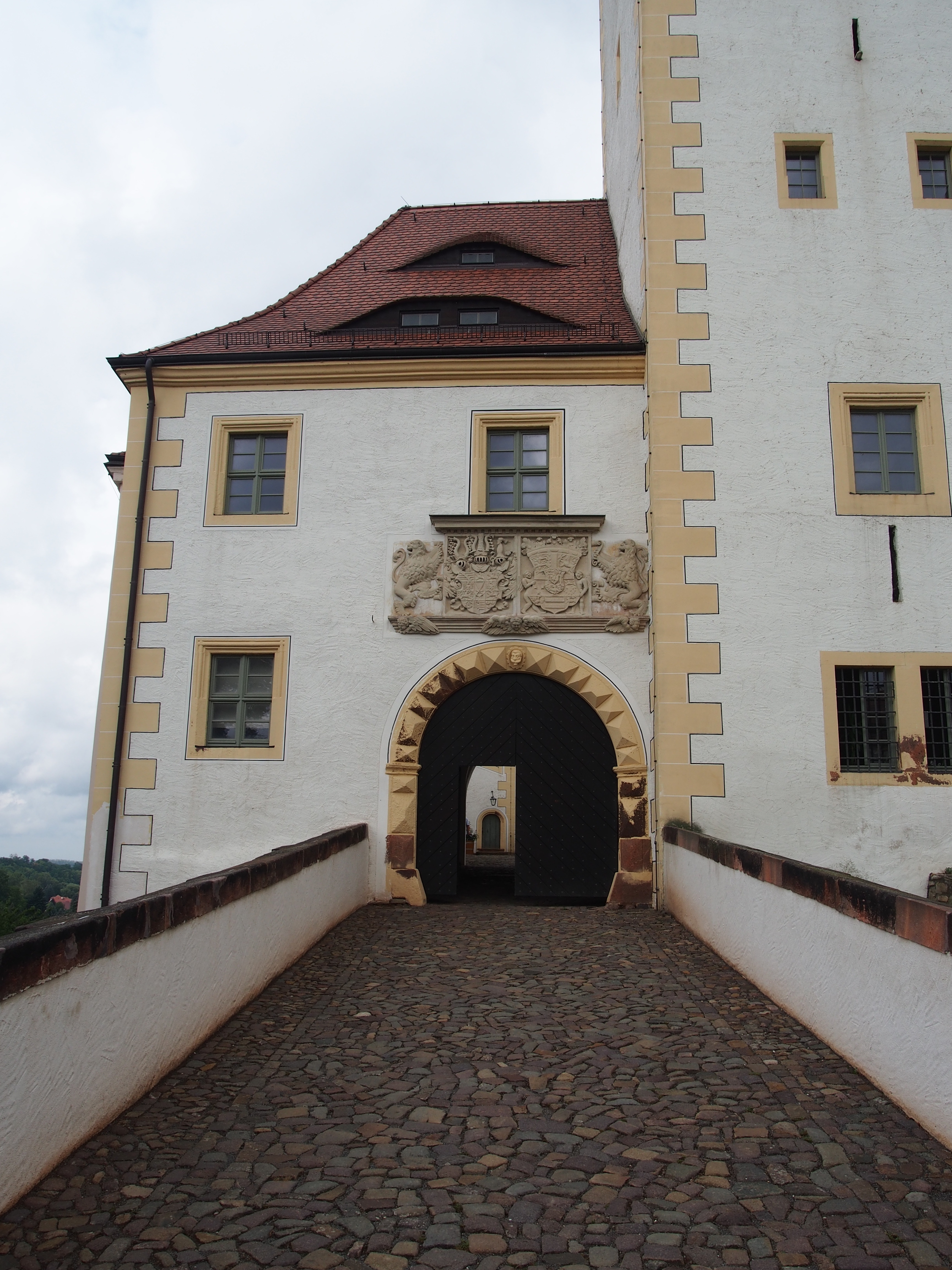 The Main Gate (well, the one through which the Prisoners were marched when they arrived in town, the ‘service entrance’ is around the side, off to the right, and up the hill. Remember, this was an Oflag (for officers) so they were ‘gentlemen’ and you wouldn’t have them use the servants entrance!The sparse furnishings of something represented as a ‘typical’ cell … but, being officers, the occupant(s) often had (or acquired) other possessions which would have filled up the space slightly more. I suspect it would have been unlikely they would have had a room to themselves anyway.The Inner Courtyard. The space was deemed too small for proper exercise by the Red Cross so the Germans fenced off a part of the Castle’s game park (behind and down the hill from the building here) which is where many of the escape attempts were made.The outer courtyard showing what would have been the entrance to the Kommandatur – but is now the entrance to the Youth Hostel.The road up to the service entrance. The rear of the Kommandatur is near right, the lower building and the building behind it were the prison proper.